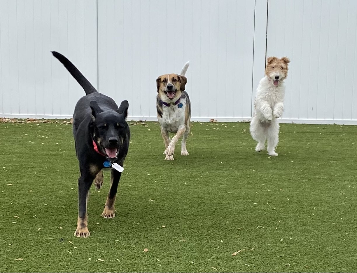 If you have signed a group play agreement, your dog can participate in group play with other dogs. If your dog isn’t a fan of others, they will get one-on-one play time or walks.